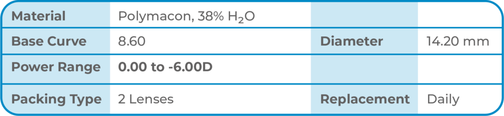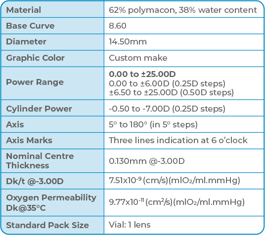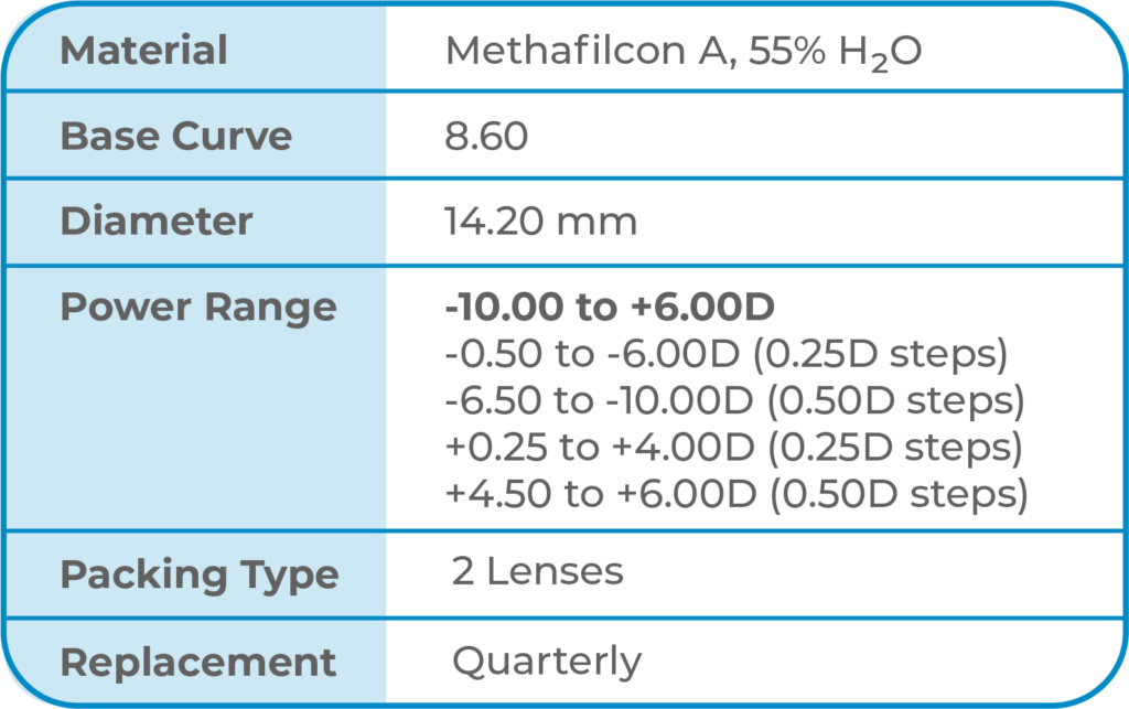 SPECTRUM Color markalı kontakt lensler, kullanıcılarına uzun süreli konfor sunar. Lenslerimiz, tüm ortamlarda dayanıklı ve güvenilir performansıyla hala yaygın olarak tanınan klasik polymacon malzemesinden üretilir.